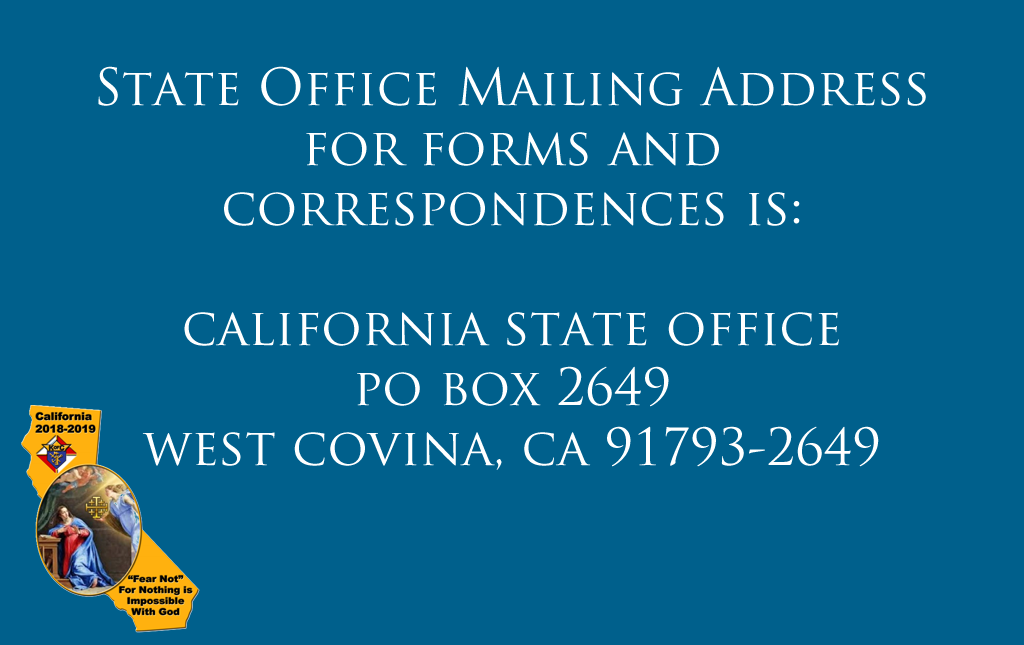 Contact:  (909) 434-0460,    state.office@californiaknights.org