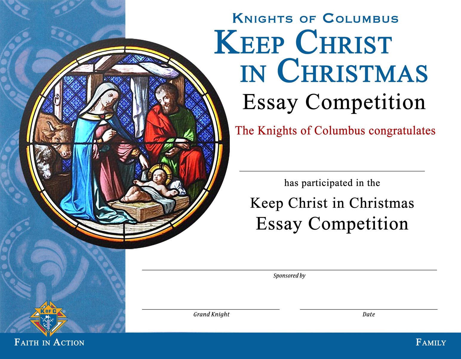 As Needed Keep Christ in Christmas – Essay Participant Certificate – Council