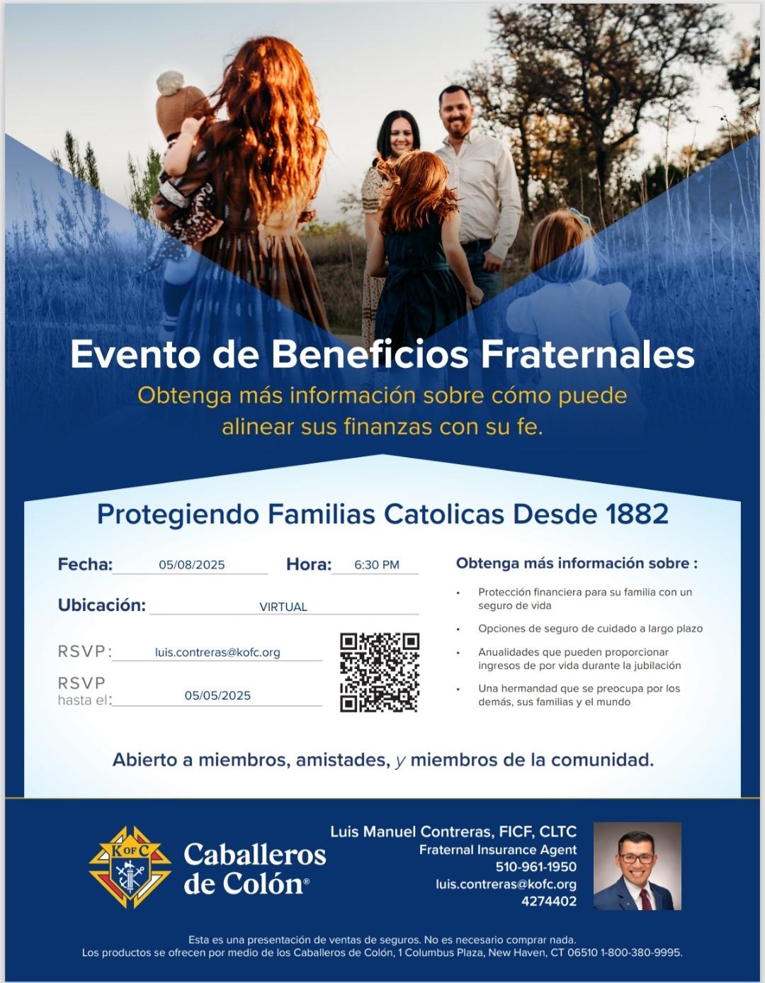 Evento de Beneficios Fraternales May 8th Published May 4, 2025 at 1080 × 1387 in Upcoming Virtual Benefit Events